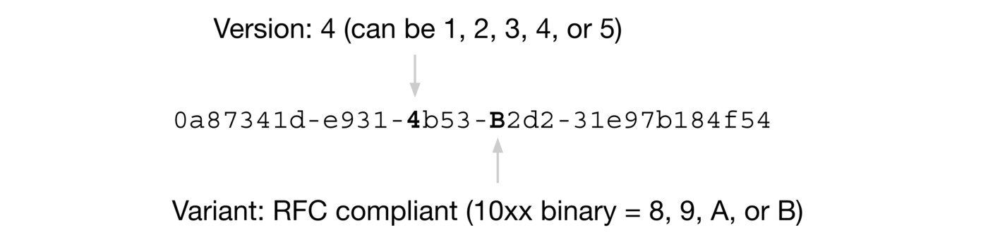 UUID.randomUUID()RFC 4122 中关于 UUID 的示例是这样的: