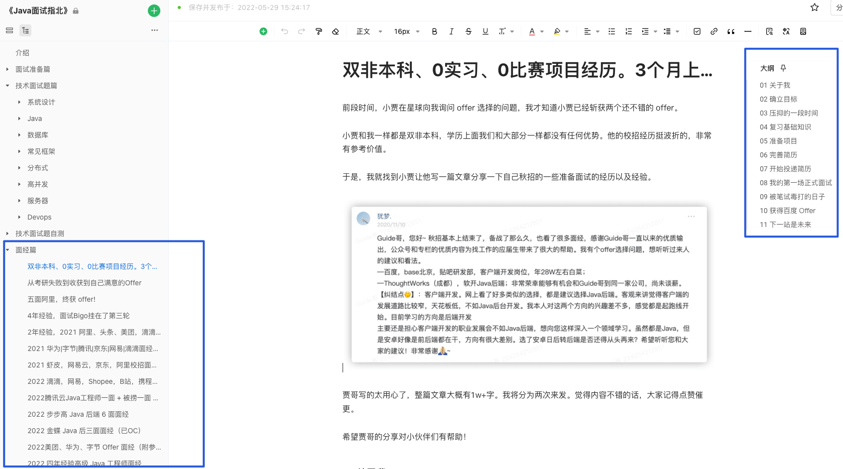 在 《Java 面试指北》 的 「面经篇」 ,我分享了 30+ 篇高质量的 Java 后端面经,有校招的,也有社招的,有大厂的,也有中小厂的。