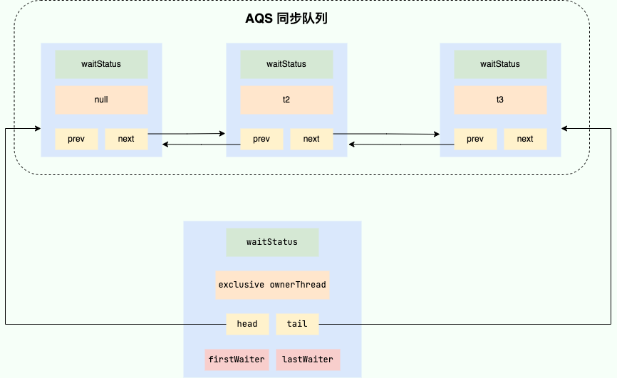 1、首先, 3 个线程会尝试获取可重入锁 lock,假设我们现在有 3 个线程分别是 t1、t2、t3,随后 t1 得到了锁,而 t2、t3 没有抢到锁,故将这两个线程存入等待队列中。