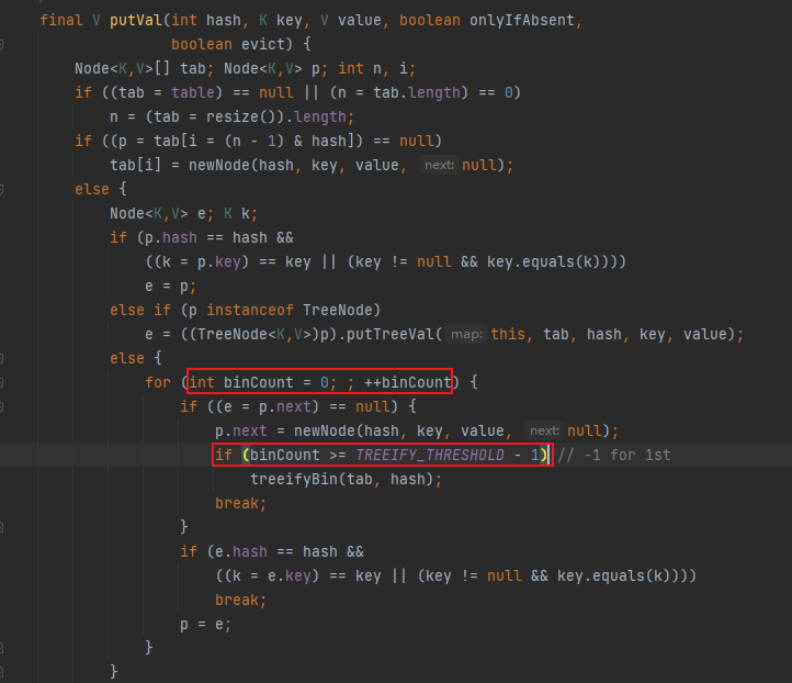 final V putVal(int hash, K key, V value, boolean onlyIfAbsent,