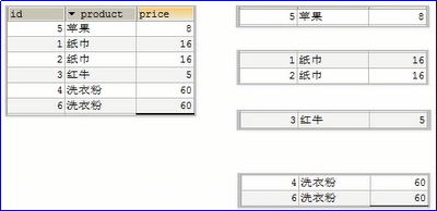 说明:先按照商品名字进行分组,然后再按照商品的价格进行分组。
