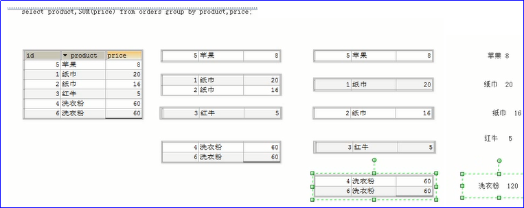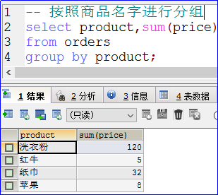 说明:先按照product进行分组,分组完成之后再给每一组进行求和。