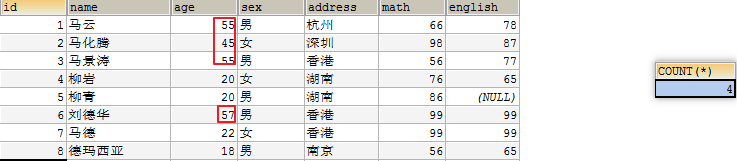 5.编写sql,修改id为1的数据信息,年龄改为100