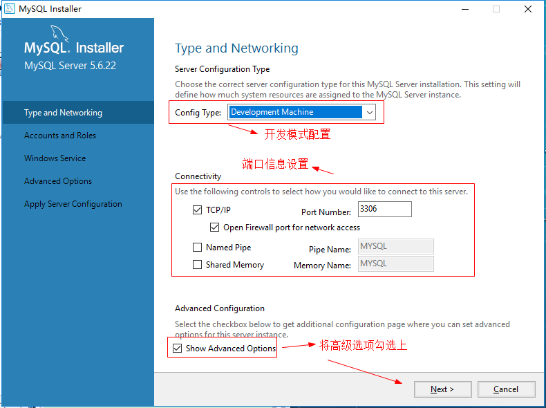 9.配置MySql开发模式以及端口号相关配置,然后点击下一步