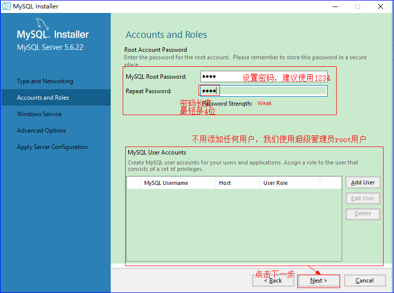 说明:MySql默认端口是3306.这里不要修改,我们访问数据库的时候输入端口号3306即可。