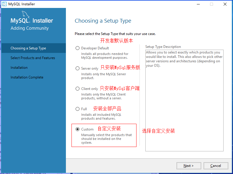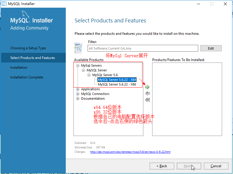 4.根据电脑配置选择要安装的MySql版本,然后点击next