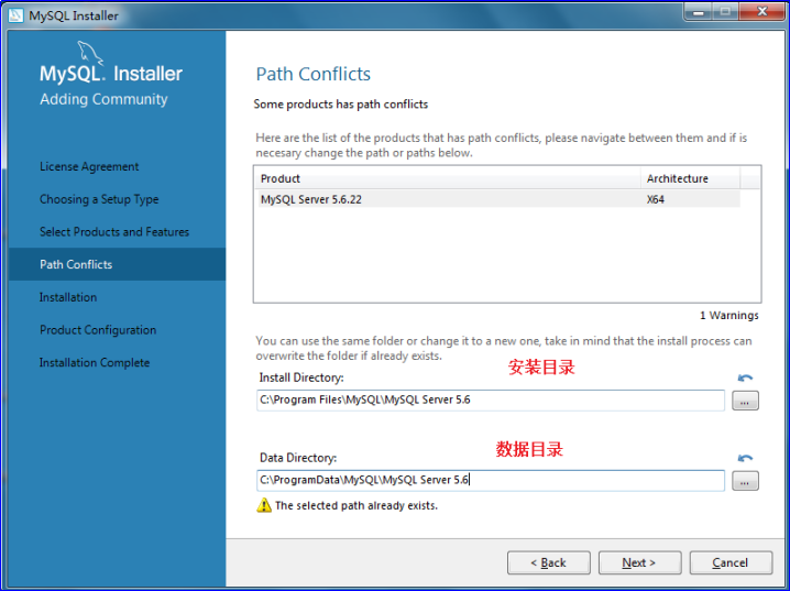注意:一定要保证Install Directory和data Directory保存的路径一致,这样才可以保证卸载MySql的时候会很方便。
