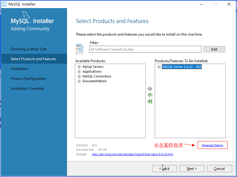 6.点击back返回后,点击高级选项,配置安装路径,配置成功后点击下一步