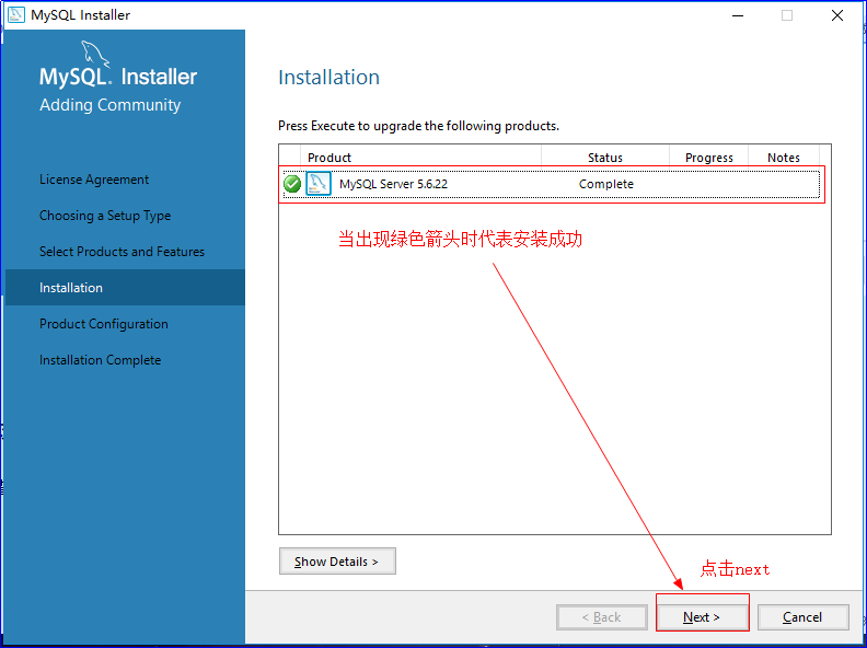 7.当出现绿色对号时表名安装成功,然后点击下一步