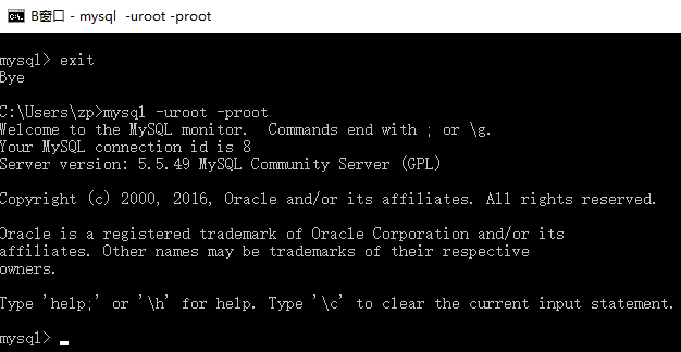 2.重新打开一个新的窗口,设置为B窗口,登录mysql