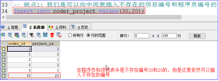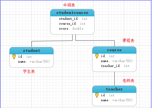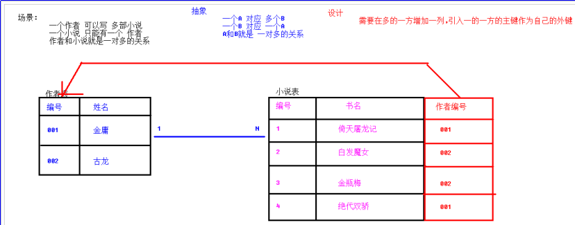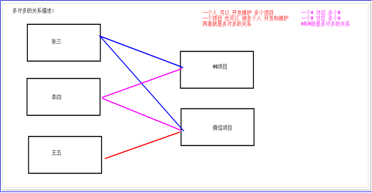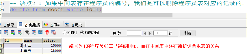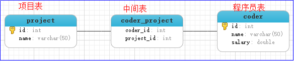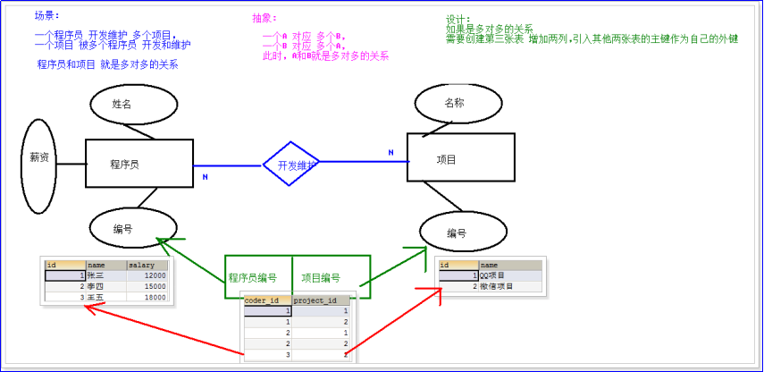 2)多对多:创建从表(中间表)维护两张主表的关系,在从表中至少要有两列来自于主表的主键作为外键