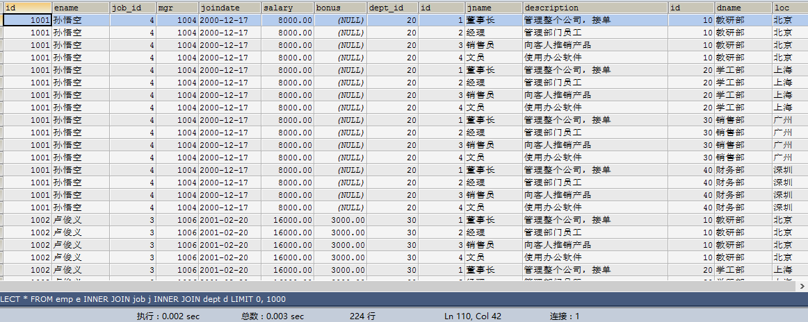 INSERT INTO student3(id,NAME,age,sex,address,math,english) VALUES (1,'马云',55,'男','杭州',66,78),(2,'马化腾',45,'女','深圳',98,87),(3,'马景涛',55,'男','香港',56,77),(4,'柳岩',20,'女','湖南',76,65),(5,'柳青',20,'男','湖南',86,NULL),(6,'刘德华',57,'男','香港',99,99),(7,'马德',22,'女','香港',99,99),(8,'德玛西亚',18,'男','南京',56,65);