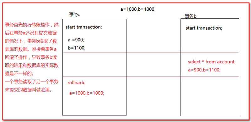 一个事务读取了另一个事务没有提交的数据,非常严重,必须避免脏读。