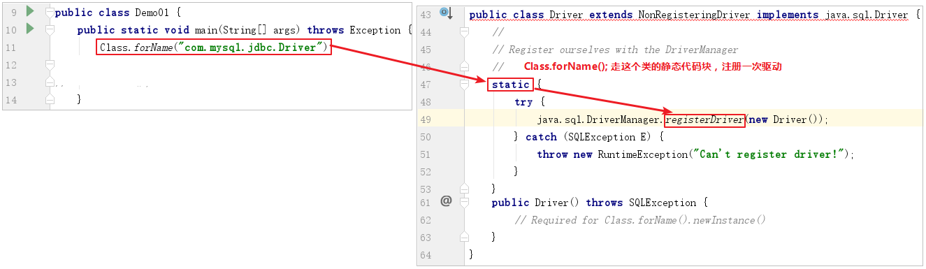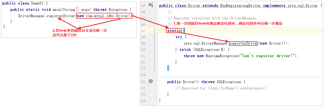 我们Java程序需要通过数据库驱动才能连接到数据库,因此需要注册驱动。