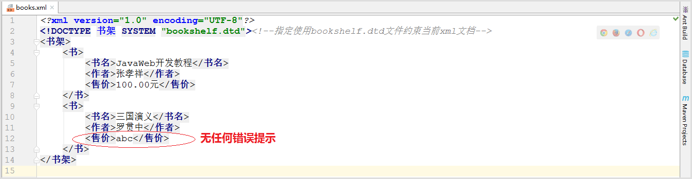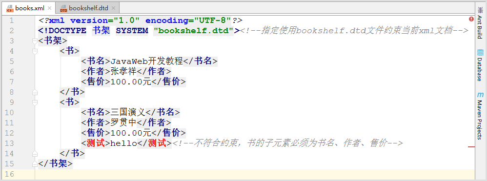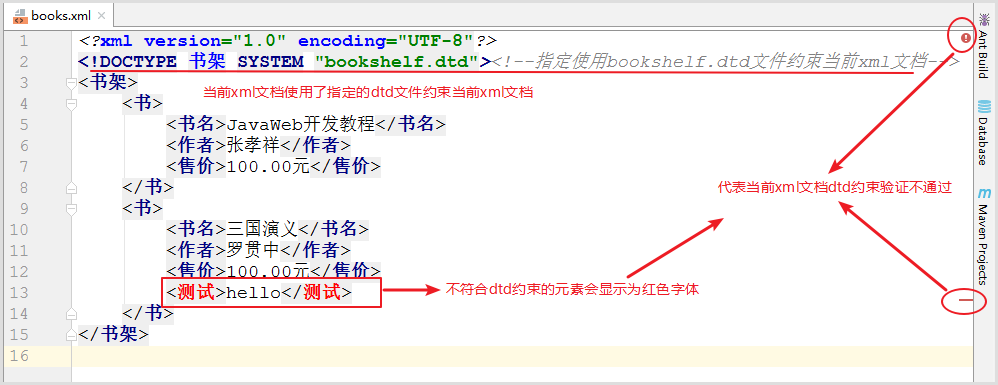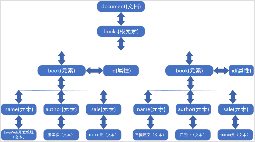 - 可扩展:所有的标签都是自定义的,可以随意扩展的。如:<abc/>,<姓名>