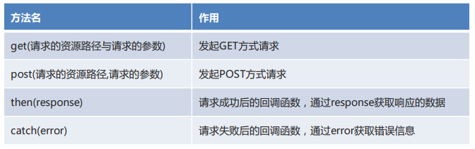 3.使用axios对象调用方法来处理响应的数据。axios常用方法
